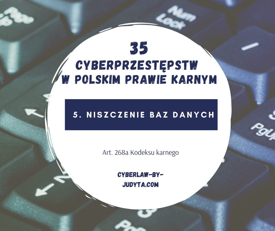 Art. 268a § 1. Kto, nie będąc do tego uprawnionym, niszczy, uszkadza, usuwa, zmienia lub utrudnia dostęp do danych informatycznych, albo w istotnym stopniu zakłóca lub uniemożliwia automatyczne przetwarzanie, gromadzenie lub przekazywanie takich danych, podlega karze pozbawienia wolności do lat 3.